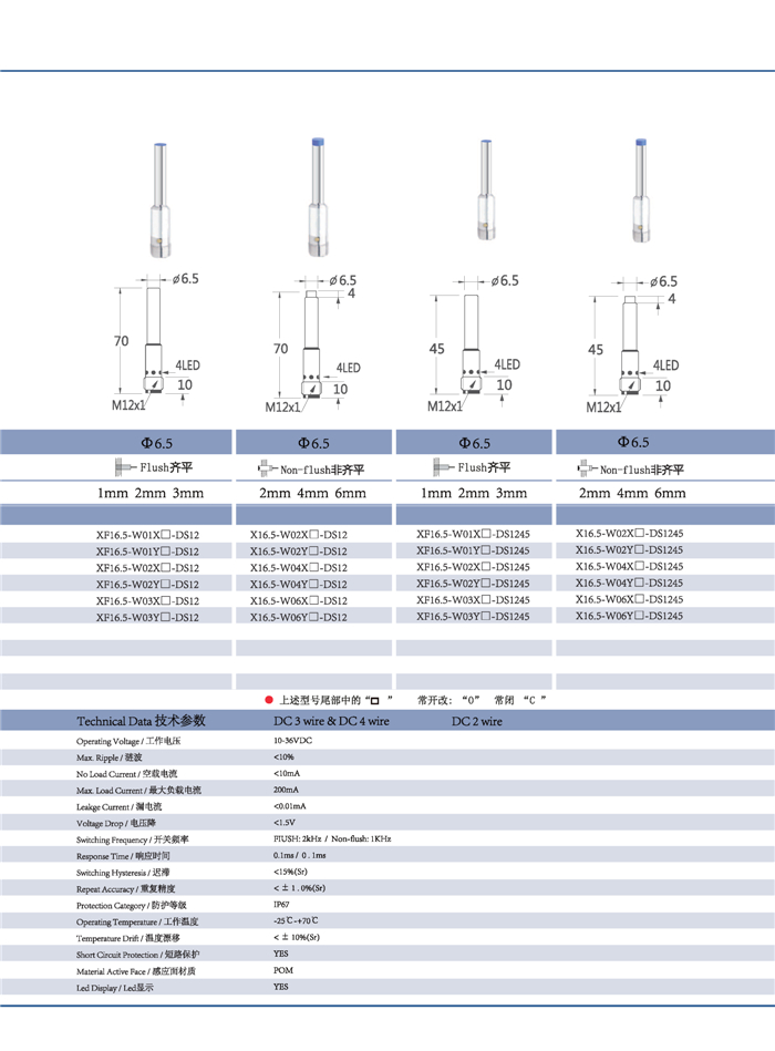符合行业标准的 DC, AC 或 AC / DC 输出设计,可达4倍检测距离,更具性价比优势,产品系列包括圆柱型 齐平/非齐平;常开/常闭;出线式/插件式;